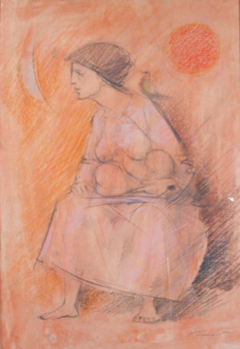 Lot 11 | LONGARETTI TRENTO (Treviglio 1916) "Figura seduta" Acquerello su carta cm. H:...
