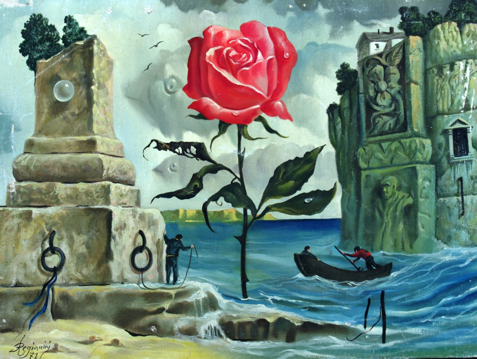 "L'arrivo del temporale" 1971 Olio su tela cm. H: 30.00 L: 40.00 Firma ed anno in basso a sinistra, Titolo, firma ed anno al retro.