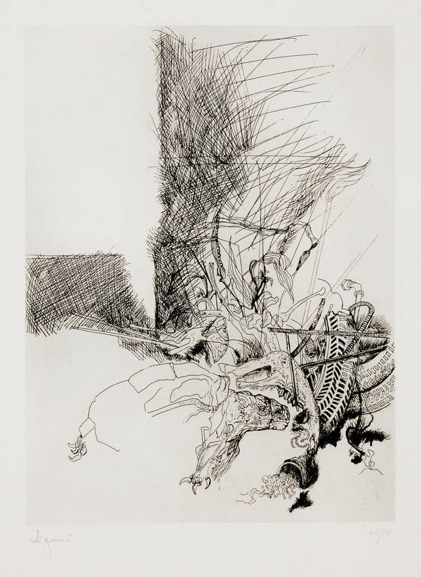 Giuseppe Zigaina Senza titolo acquaforte, es. 40/100 cm. 38x29 l’inciso - cm. 70x50 L’opera presenta della macchie di muffa Firma in basso a sx dell’inciso