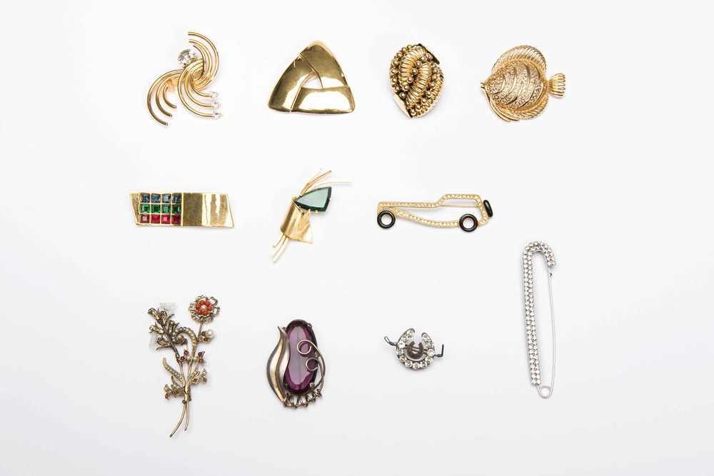 Monet, Jordan e anonimi: lotto composto da undici spille di varie forme,...
