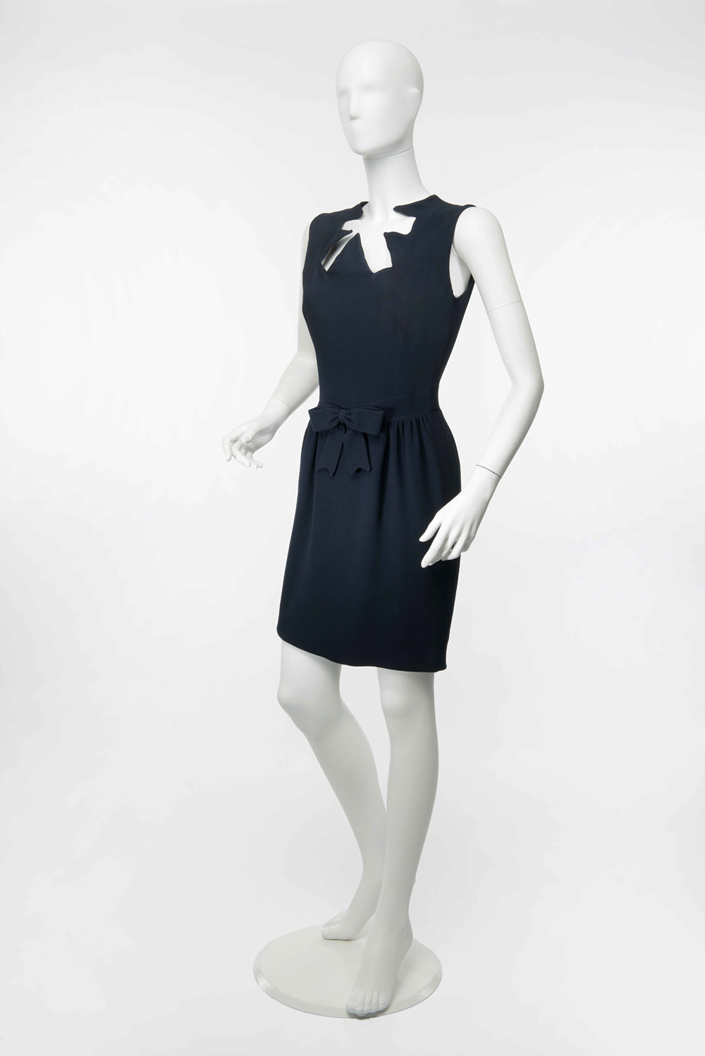 Moschino Couture: abito cocktail blu con scollo irregolare e fiocco in vita (lievi difetti)