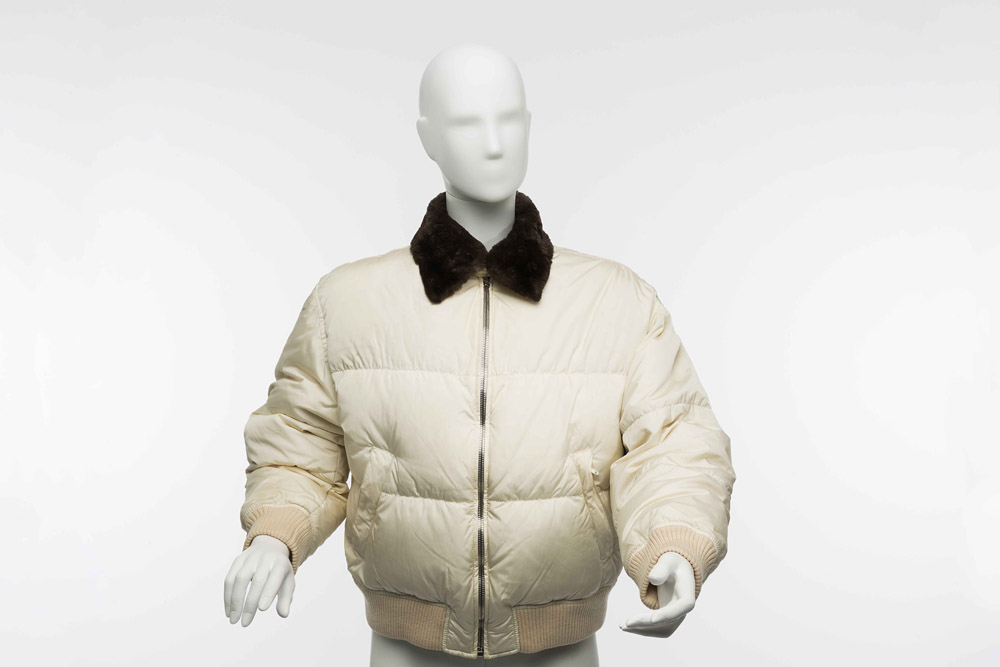 Prada: bomber piumino color avorio con collo in castoro (lievi difetti)