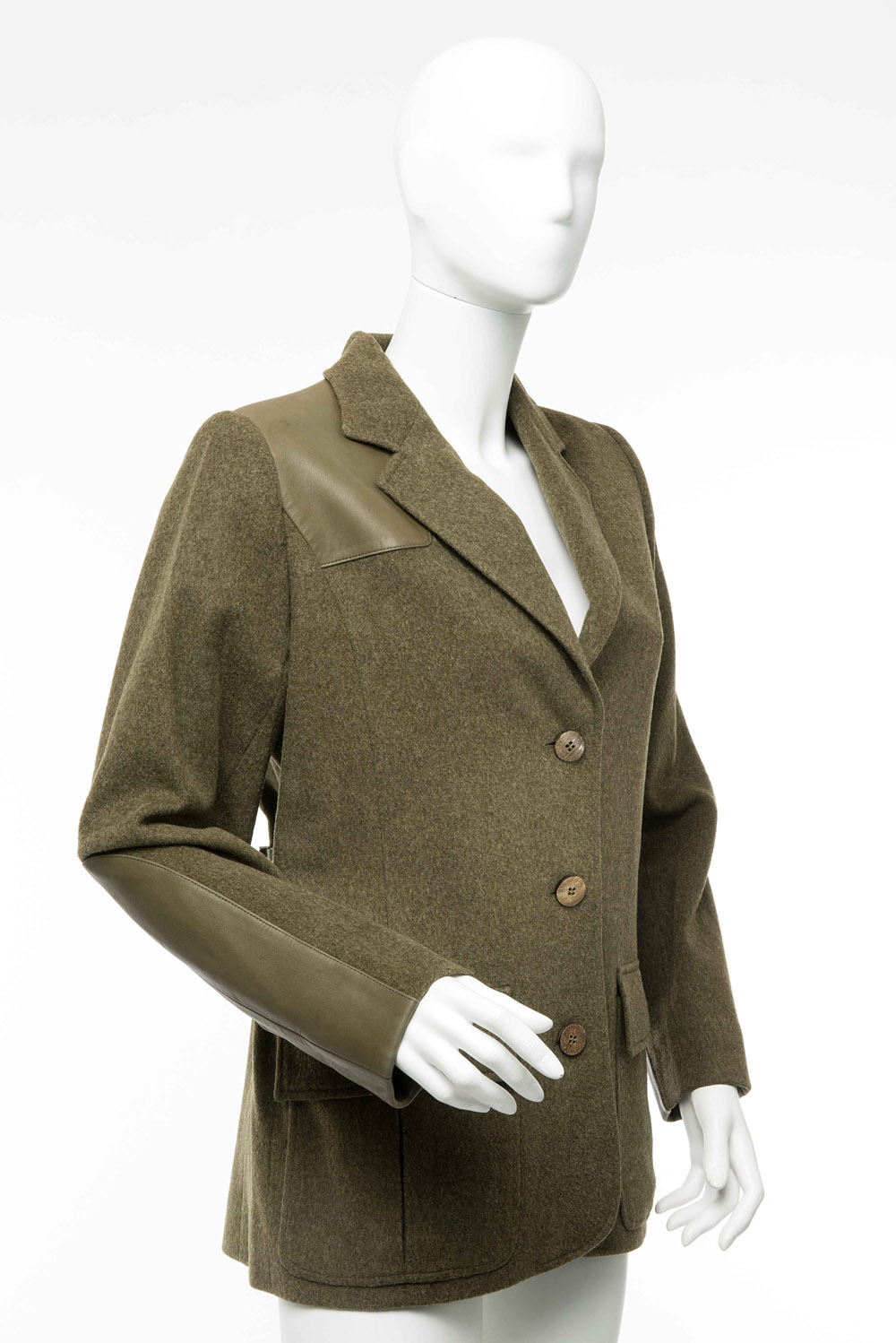 Hermes Paris per Koelble & Brunotte-Stuttgart: giacca in lana e cachemire, con inserti in pelle color verde bosco (lievi difetti)