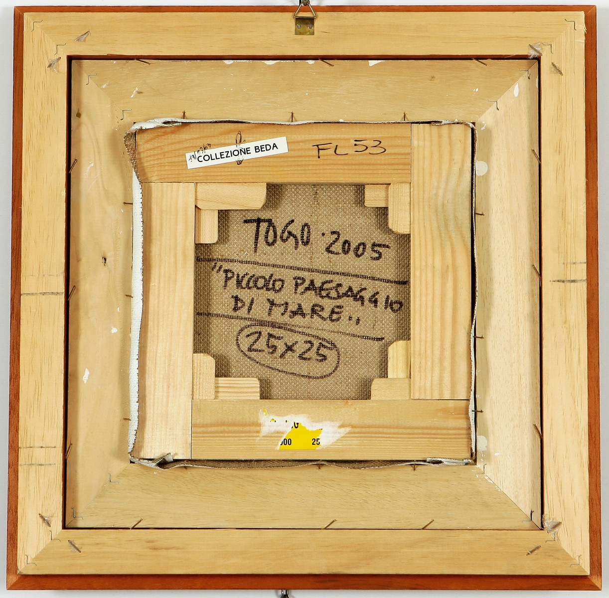 Firmato in basso a destra. Autentica dell'artista su fotografia. Certificato di autenticità e provenienza "Telemarket s.p.a." Al retro firma, anno e titolo. Cornice presente.