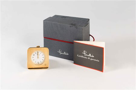 Pomellato: sveglia da tasca in bachelite e metallo dorato, in scatola originale