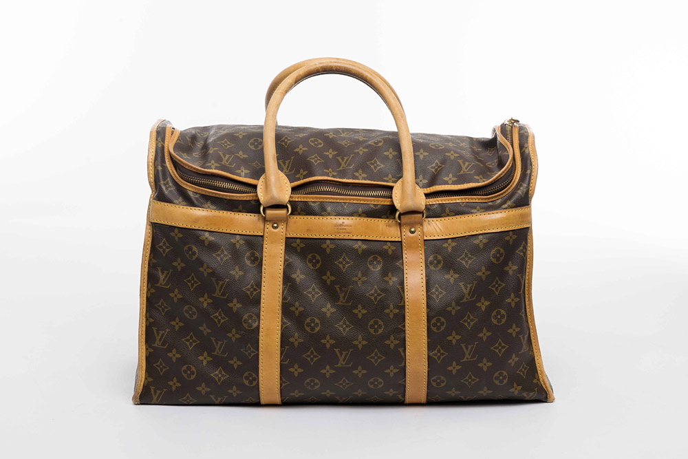 Louis Vuitton: borsone portascarpe in tela Monogram, profili in vacchetta, largh. cm 54 (lievi difetti)