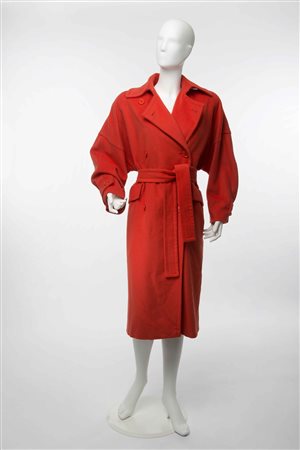 Ferrè Studio 0001: cappotto in lana foderata color arancio con cintura, tg 38...