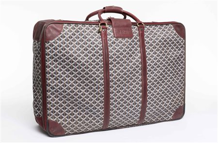 Goyard Paris: valigia morbida in tela logata, rifiniture in pelle bordeaux, doppio manico, mis. cm 76x22x51