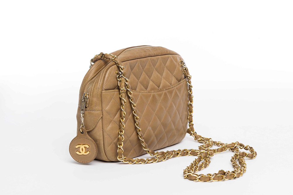 Chanel: borsa in pelle matelassé color cammello, largh. cm 25, in sacchetto originale (lievi difetti)