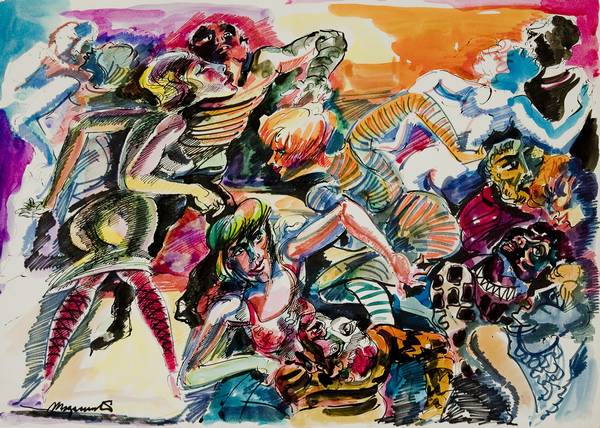 Marino Mazzacurati I ragazzi del Piper Club - 1958 tecnica mista su carta cm. 50x70 Firma in basso a sx