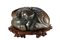 Grande bufalo in giada verde spinacio e grigio, intagliato e decorato secondo...