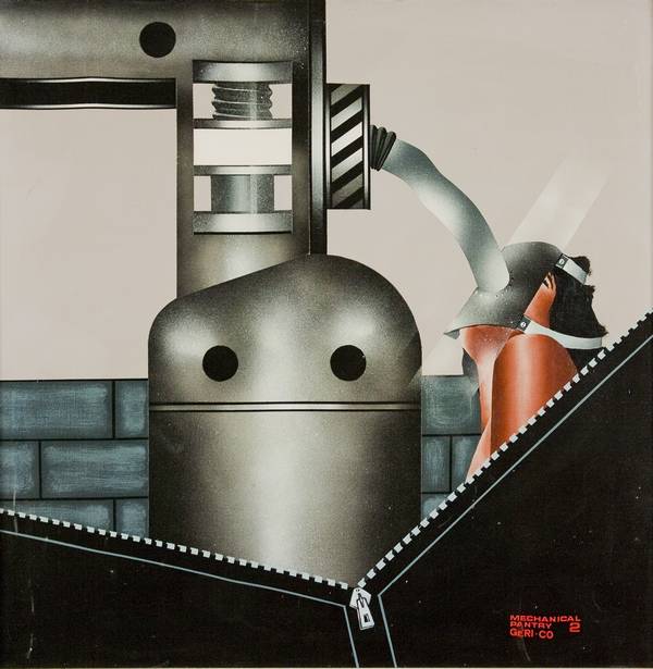 Gerico Mechanical Pantry 2 - 1974 olio su tela cm. 60x60 Sul retro dichiarazione di autenticità a cura dell’artista Firma in basso a dx