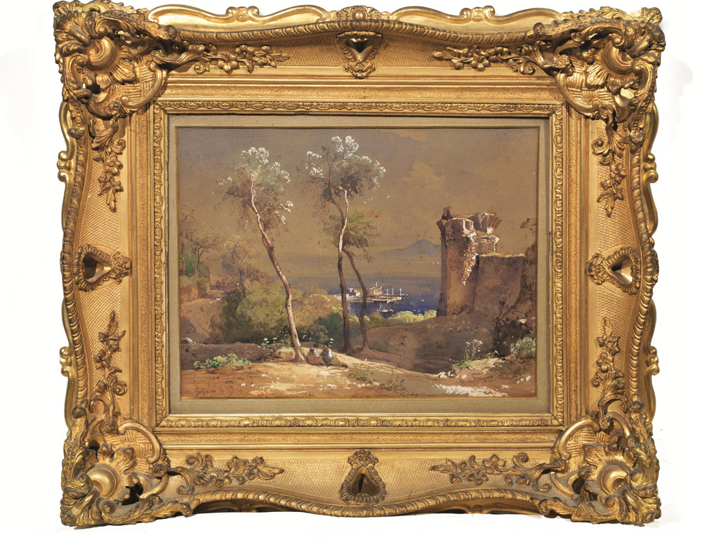 Giacinto Gigante (Napoli 1806 - 1876) COSTIERA AMALFITANA acquerello su carta...