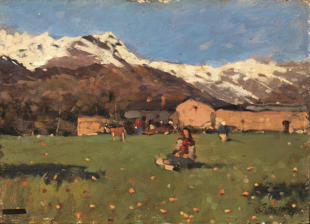 Enrico Reycend (Torino 1855 - Torino 1928) PAESAGGIO MONTANO olio su...