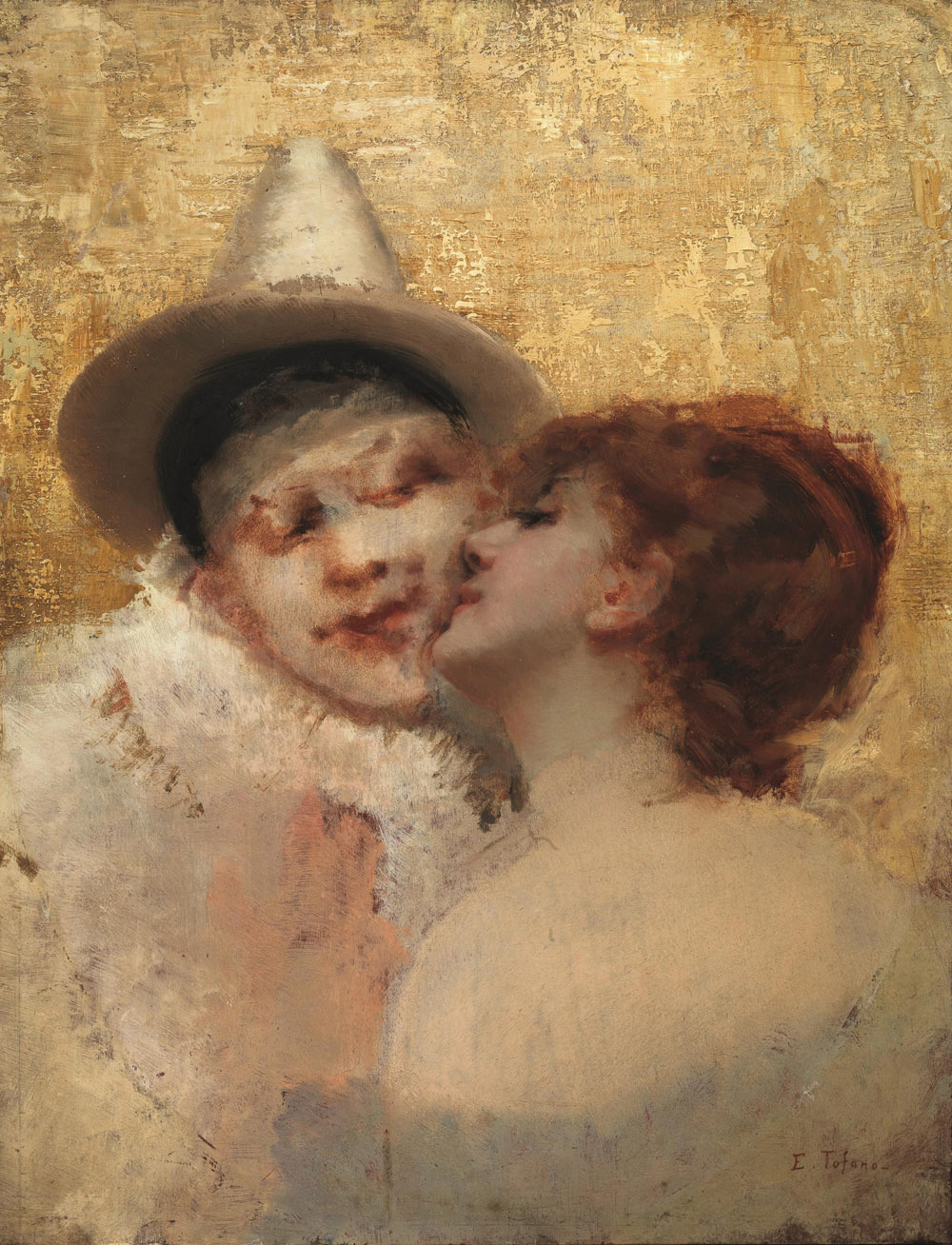 Eduardo Tofano (Napoli 1838 - Roma 1920) IL BACIO olio su tavola, cm 61x46,5...