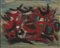 SCROPPO FILIPPO (Riesi (CL) 1910 - 1993 Torre Pellice (TO)) - "Immagini nello spazio" 1960, 44,5x59,5 olio su masonite. Opera firmata in basso a destra e al retro con data e titolo