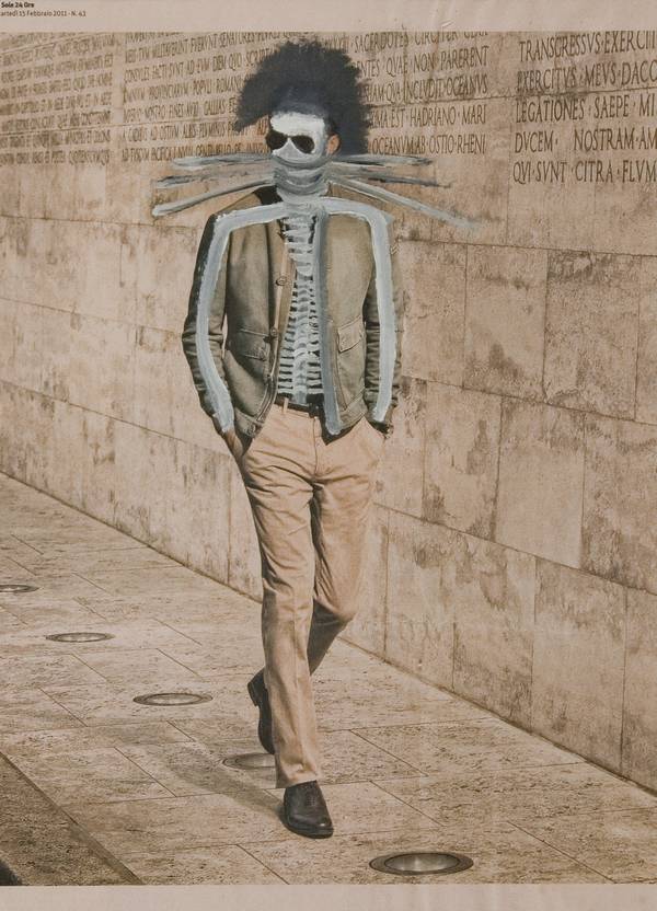 Oliviero Falconi Happy Family - Il sole 24 ore, martedi 15 febbraio 2011 - nr.43 - 2011 Firma sul retro olio su pagina di giornale cm. 40x30