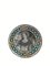in maiolica dipinta in policromia su smalto stannifero con azzurro, verde rame, blu di cobalto, giallo antimonio; retro smaltato. Il centro del cavetto mostra una decorazione con figura di donna con turbante raffigurata di fronte con un abito chiuso, un ramo fiorito e un paesaggio collinare di sfondo. La tesa invece porta un decoro a corona di spine centrata nei punti cardinali da fioretti multipetalo. Questa scelta iconografica è spesso rappresentata in opere delle botteghe derutesi con variante nella scelta decorativa della tesa e della cromia, con o senza lustro. Lo stile pittorico è sicuro, l’impostazione decorativa è ricca e complessa, il tratto molto delicato e sottile specialmente nella resa dei tratti somatici e dei particolari dell’abito; degna di nota l’ombreggiatura blu nelle corona sulla tesa; alt. cm 9,2, diam. cm 41,5, diam. piede cm 13,6