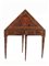 impiallaciato in bois de violette e filettato in bois de rose di forma triangolare, piano a libro decorato con motivi a rosone entro riserva triangolare, due cassettini sulla fascia, gambe troncopiramidali terminanti con dado, cm 82x111x55,5 (chiuso)