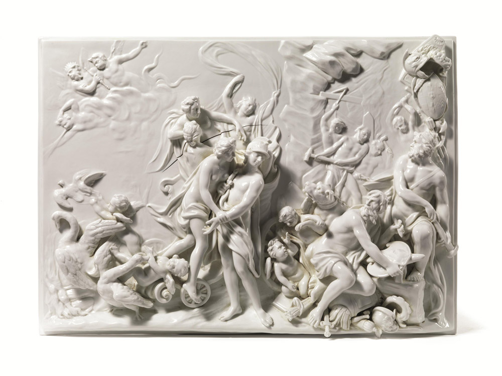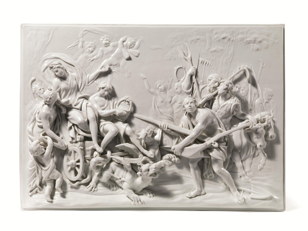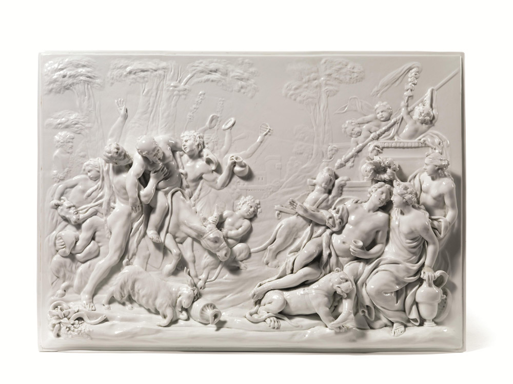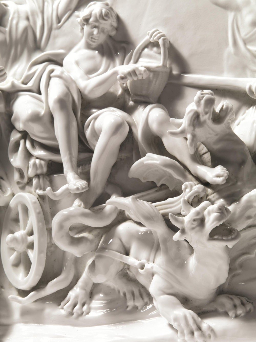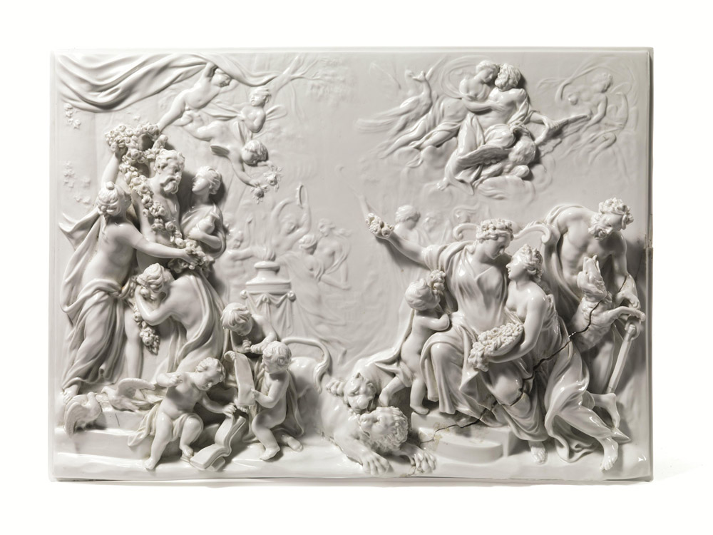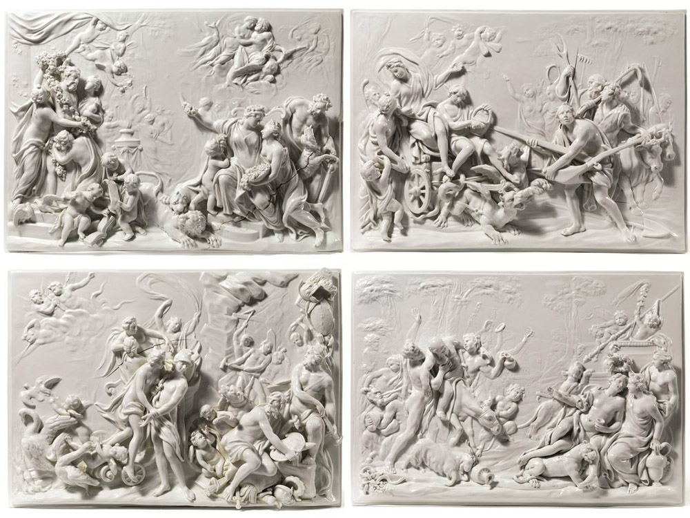 in porcellana bianca a bassorilievo raffiguranti le Quattro Stagioni , dai modelli di Massimiliano Soldani Benzi.