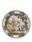 in maiolica decorata in policromia con largo cavetto e ampia tesa su base piana priva di anello d’appoggio, decoro a policromia con Adamo ed Eva e i figli intenti alle attività terrene: la donna nutre ed accudisce i figli e l’uomo dissoda la terra. La tesa è decorata con putti, elementi architettonici e ghirlande fiorite, diam. cm 26,8, alt. cm 2,7
