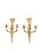in bronzo dorato, modellate in forma di cornucopia traboccante di fiori, da cui si dipartono due bracci sagomati; parte superiore abbellita da nastro con fiocco, alt. cm 52 (2)