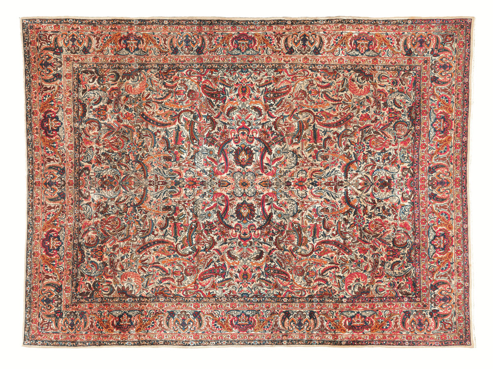 TAPPETO KIRMAN, PERSIA, SECOLO XIX fondo avorio cosparso da volute e fiori...
