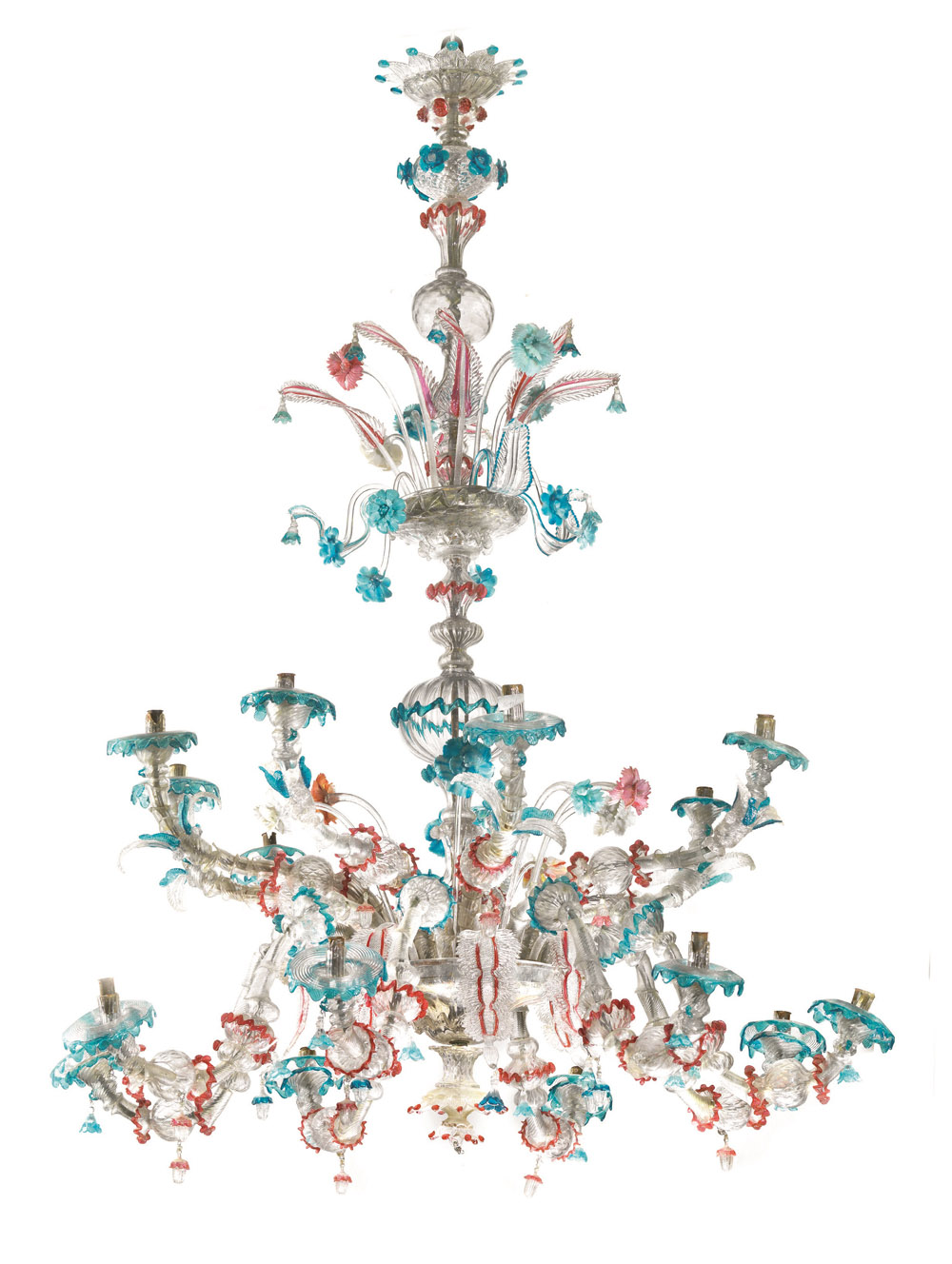 LUMIERA, MURANO, INIZI SECOLO XIX in vetro incolore e policromo a sedici...