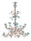 in vetro incolore e policromo a sedici luci: due serie di otto bracci di diversa forma si dipartono dal palco inferiore, alternati a fiori e foglie policrome; il palco superiore, separato sopra e sotto da due grossi elementi sferici, è anch’esso arricchito da fiori e foglie policromi, alt. cm 180, diam. cm 140