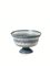 in maiolica dipinta in monocromia blu, con decorazione a “nodo orientale”, caratteristica questa della produzione delle botteghe di Montelupo in una fase che parte agli inizi del XVI secolo e si diffonde nella metà del secolo, in una struttura sempre più fitta e complessa: tale decoro è prevalentemente impiegato su forme aperte. Nella nostra coppa il nodo segue il bordo esterno della fruttiera, mentre il calice esterno e il fondo interno sono impreziositi da un motivo più articolato “alla porcellana”, caratterizzato dal tipico elemento floreale stilizzato; alt. cm 18,5, diam. cm 27,7, diam. piede cm 13,7