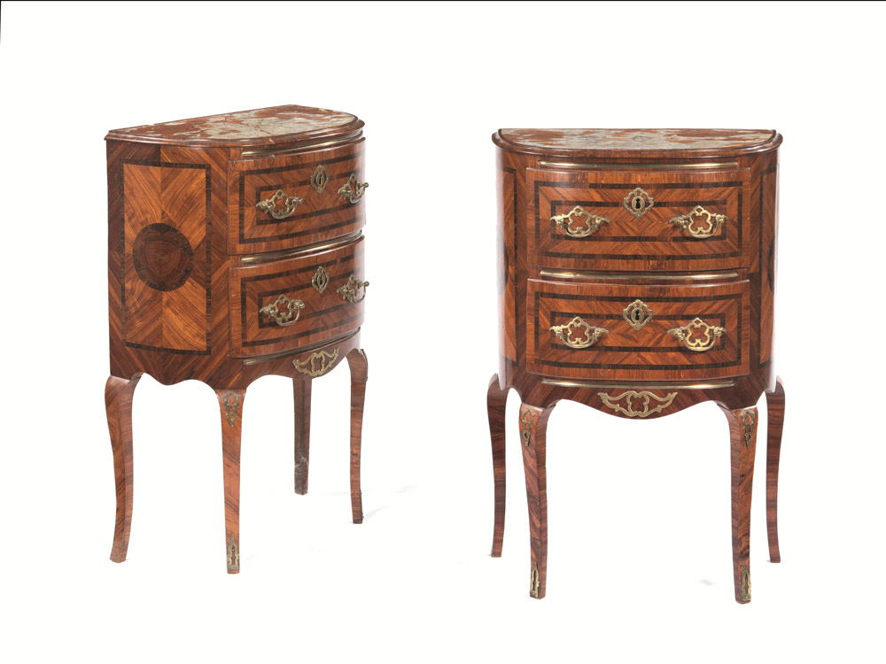 COPPIA DI COMODINI A MEZZA LUNA, SICILIA, METÀ SECOLO XVIII
