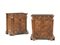 in noce e radica con filettature formanti riquadri, fronte di linea mossa con quattro cassetti sagomati, angoli scantonati decorati da lesene rastremate e rilevate, base a cornice e piedi a mensola. Recano etichetta in carta iscritta: E. Imbert Milano Santo Spirito 3 , cm 82,5x78x51 (2)