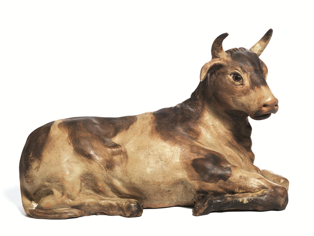Lot 175 | BUE ACCOSCIATO, NAPOLI, SECOLO XIX in terracotta policroma, alt. cm 21,...