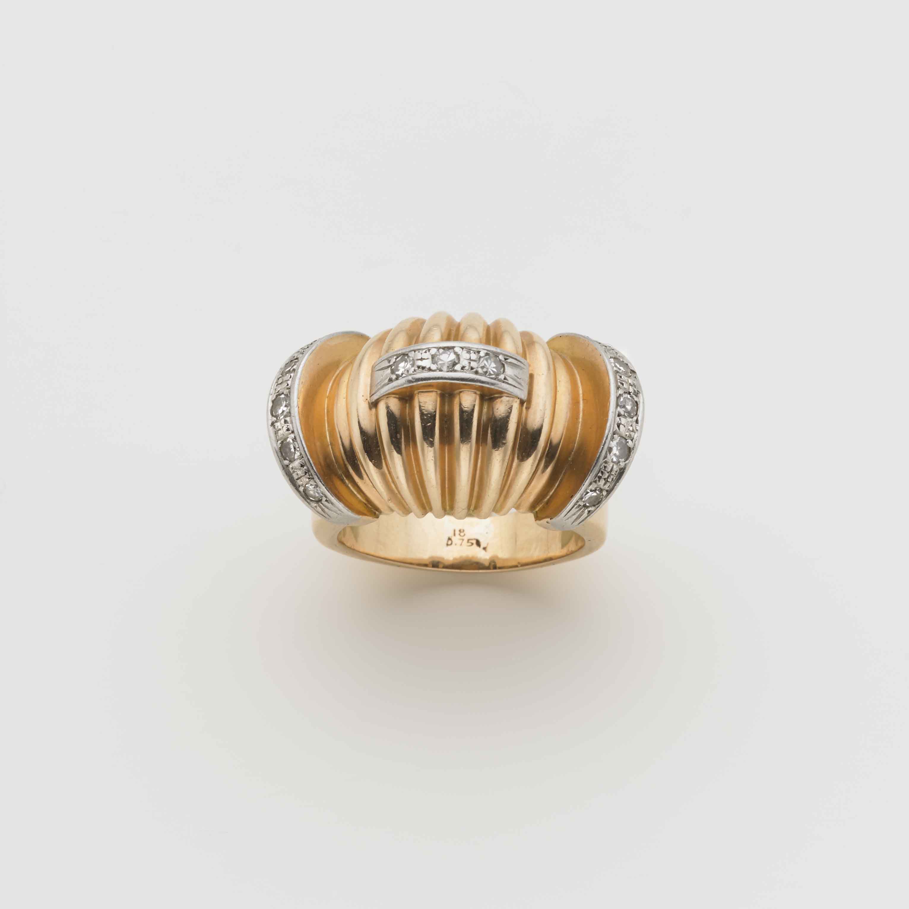 Lot 62 | Anello in oro giallo a fascia bombato con diamanti rotondi g. 16,30 misura...