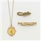 Lotto in oro giallo composto da due spille a nodo e una medaglia con...