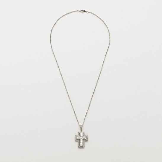 Lot 145 | Catenina con pendente a forma di croce in platino con diamanti rotondi a...