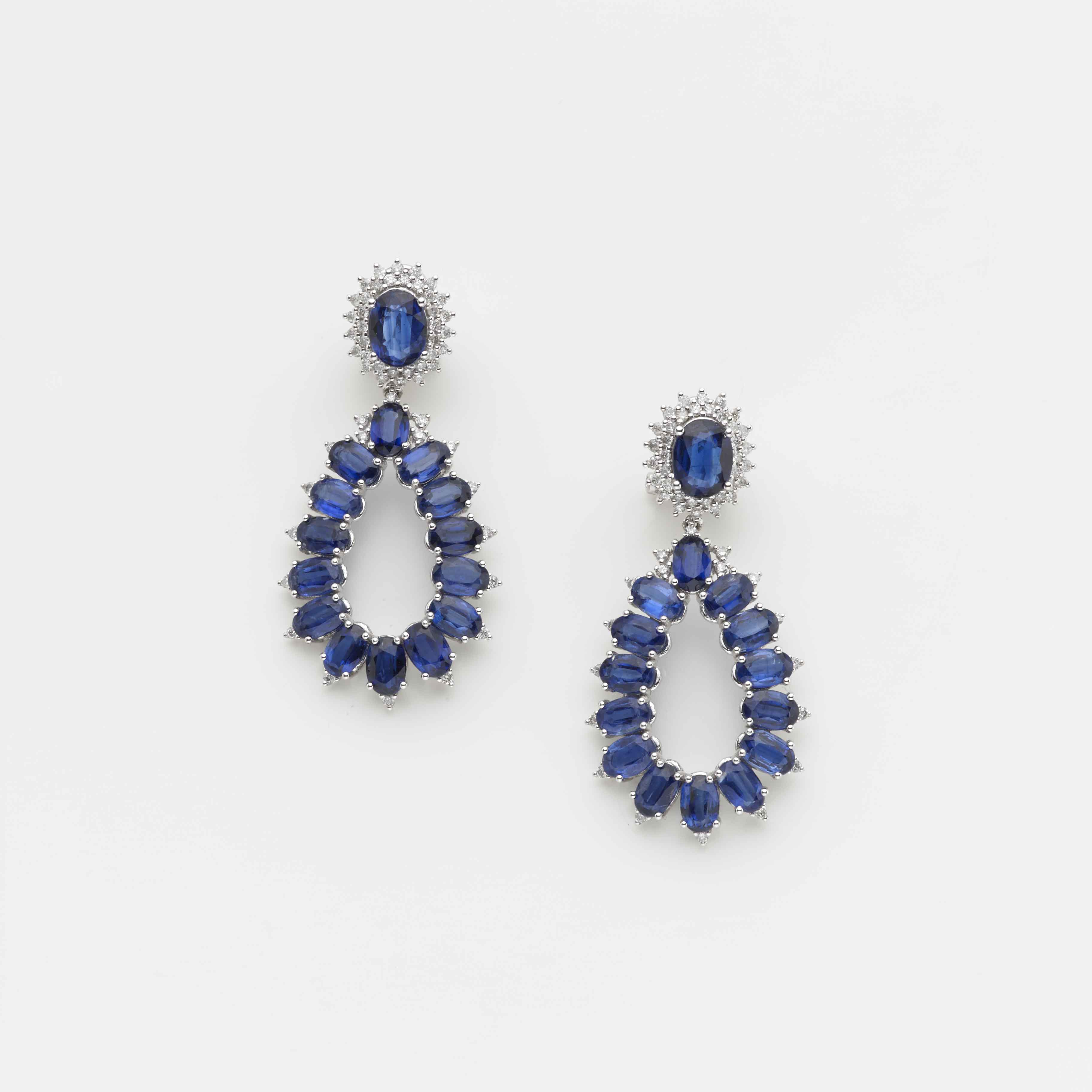 Orecchini pendenti in oro bianco con cianiti ovali e diamanti g. 16,90 White...