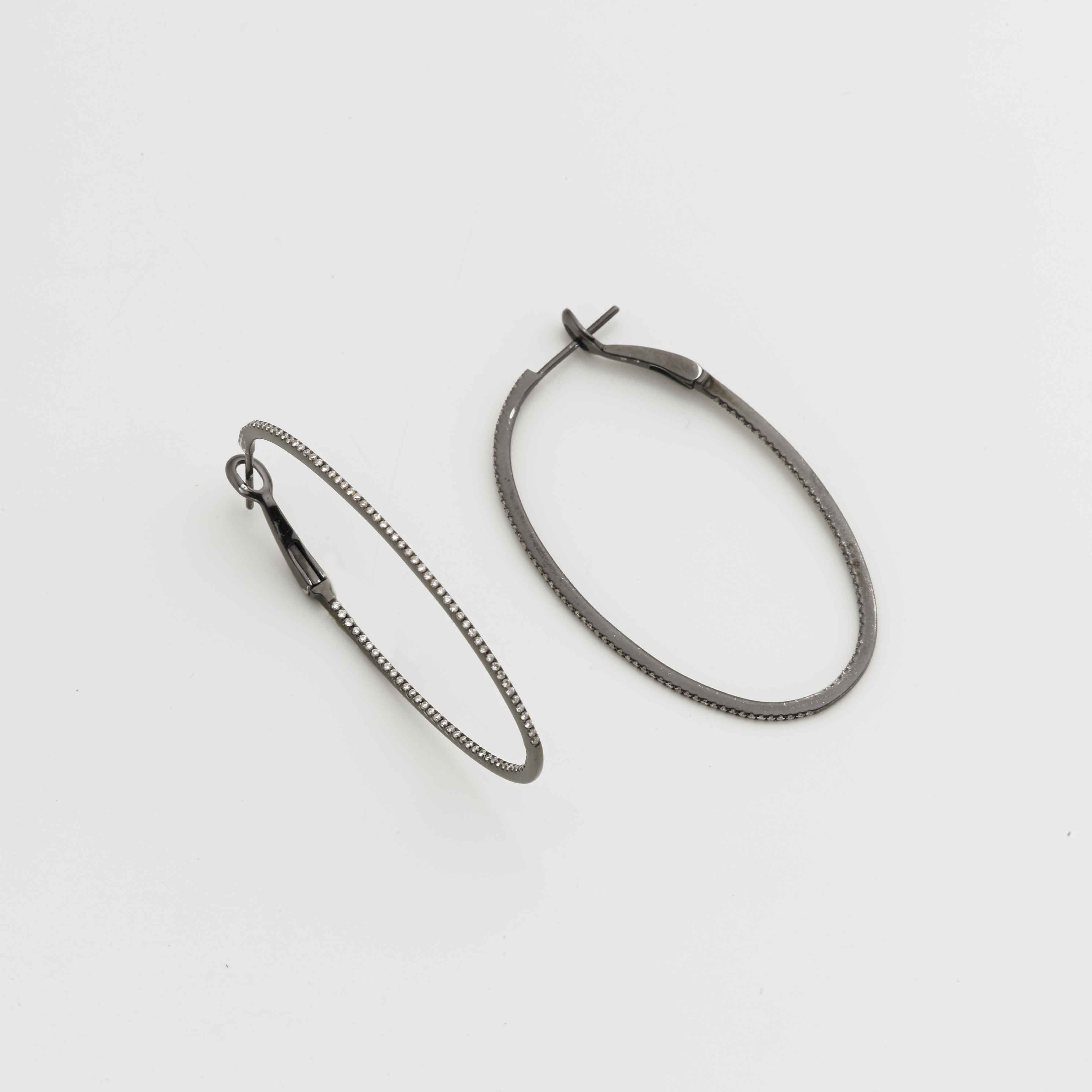 Orecchini ad ovali sottili in oro rodiato nero con piccoli diamanti g. 5,80 Thin black rhodium-plated gold earrings with diamonds