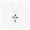 Catenina con croce in oro bianco diamanti rotondi per ct 0,90 circa e quattro cianiti a goccia per ct 3,60 circa g. 6,30 White gold chain with cross with round diamonds and four kyanite drops