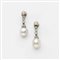 Orecchini in oro bianco e giallo con diamanti rotondi e due perle pendenti...