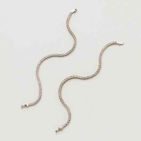 Lotto composto da due bracciali gemelli "tennis" in oro bianco, con pietre incolore, complessivi g.19,00 Lot comprising two twin white gold "tennis" bracelets with colourless gemstones