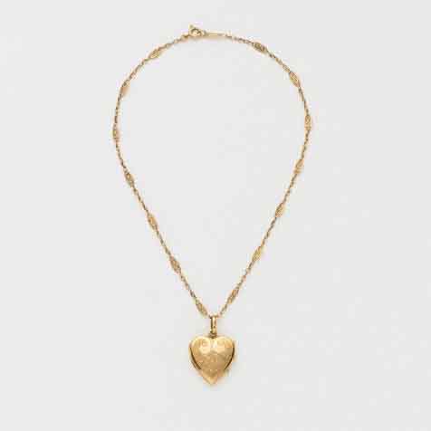 Lot 294 | Catenina con losanghe e portafoto a forma di cuore tutto in oro giallo,...