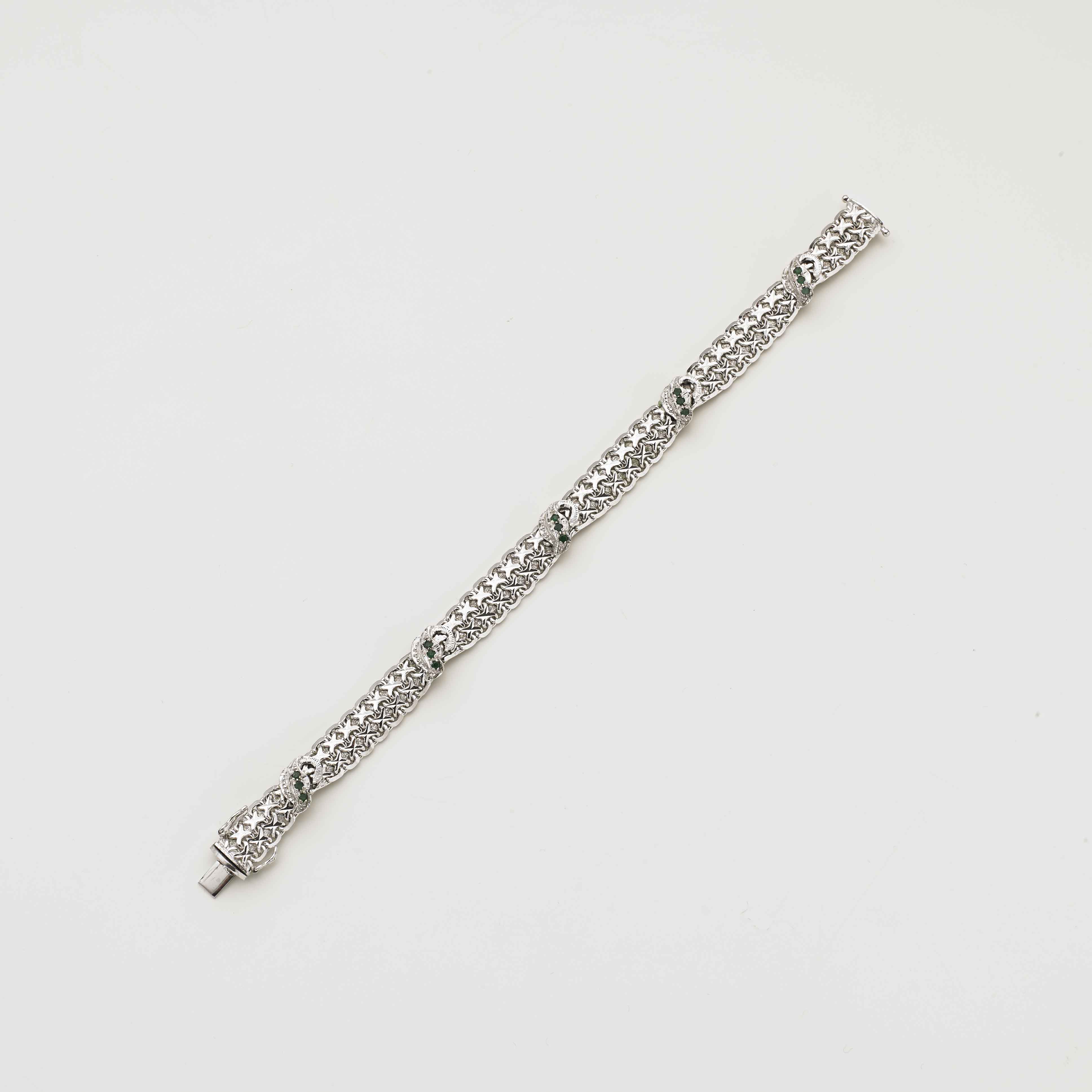 Lot 301 | Bracciale in oro bianco a maglia sfaccettata lucida con intercalati quindici...