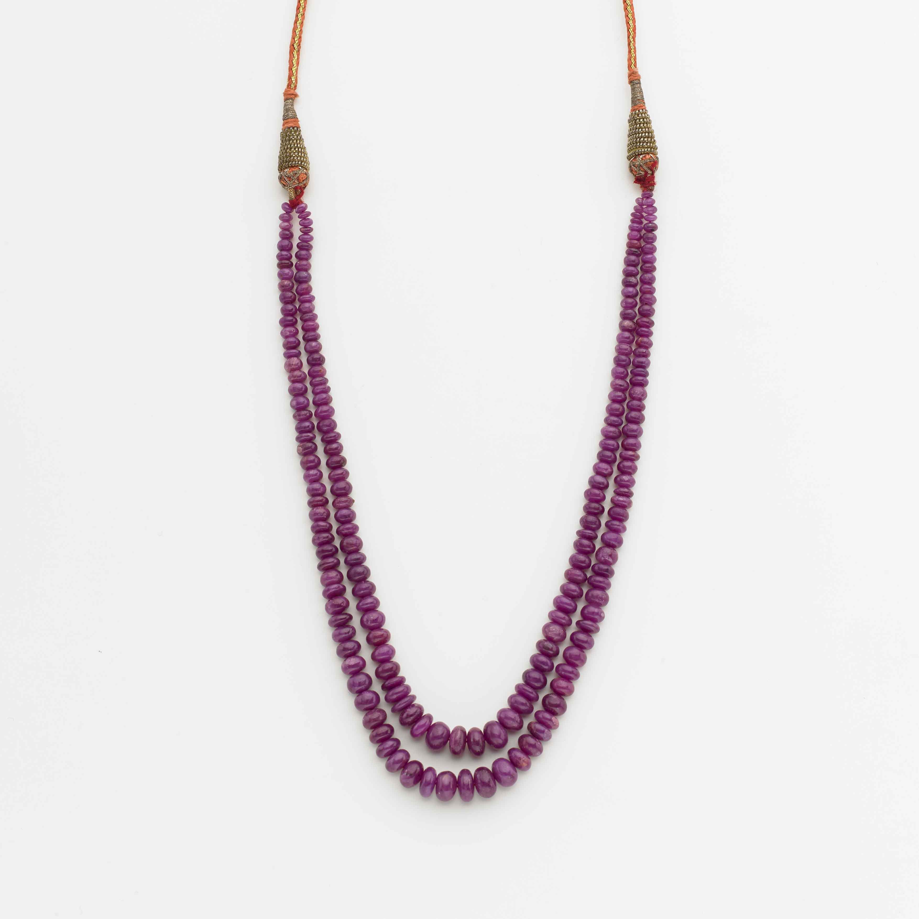 Due fili scalati di boules schiacciate in rubino g. 35,70 Two strands of ruby beads