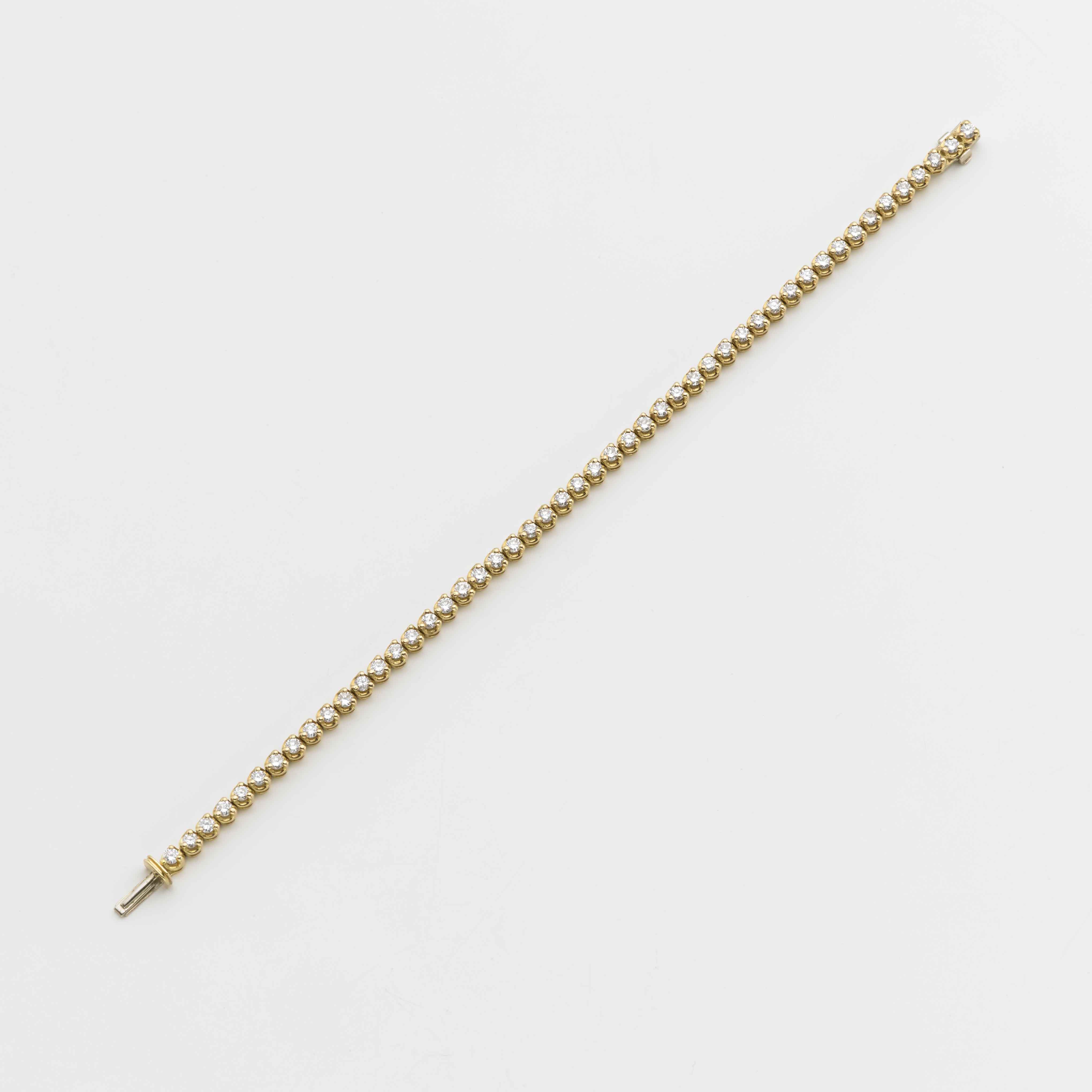 Bracciale "tennis" in oro giallo con diamanti rotondi taglio a brillante g....
