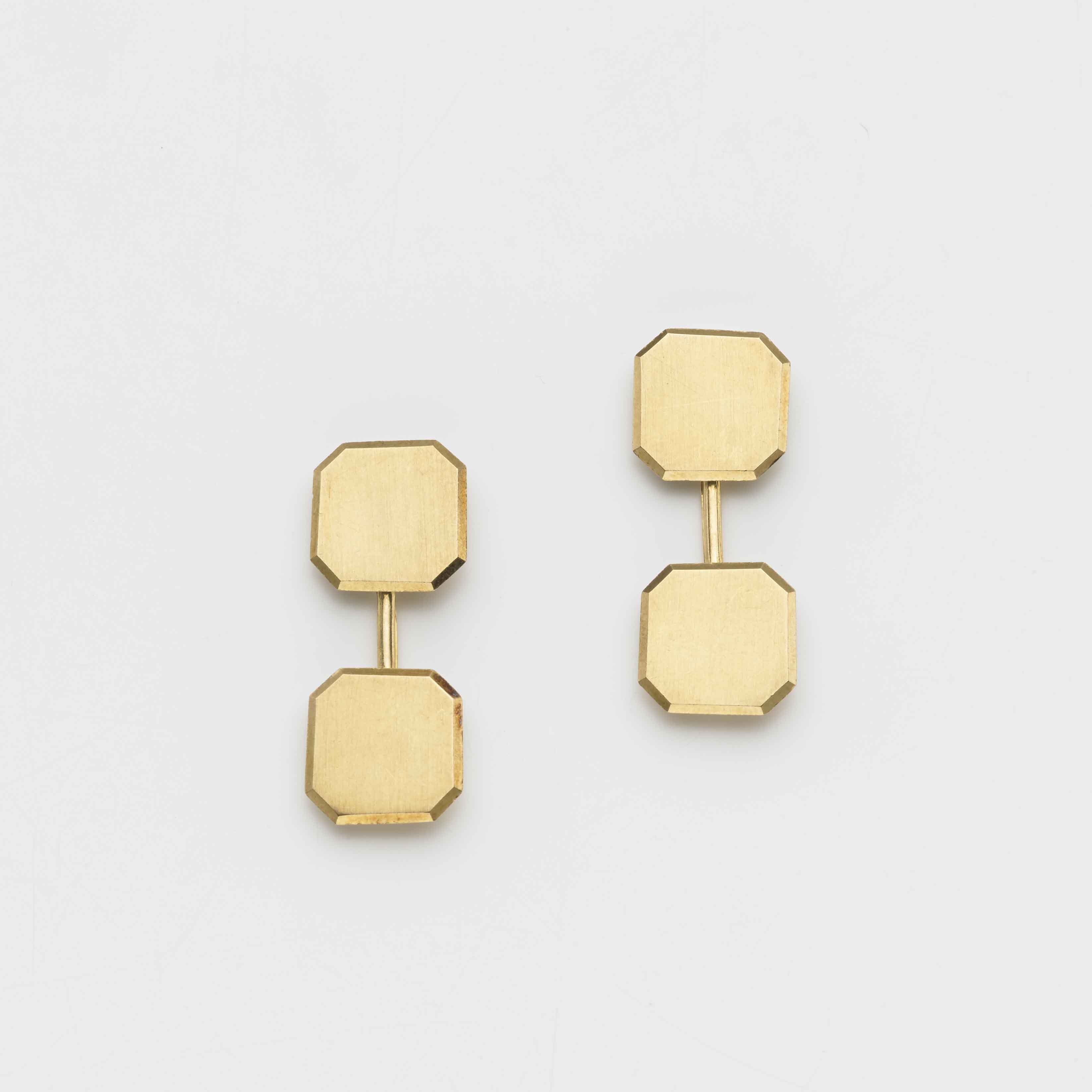 Gemelli ottagonali in oro giallo lucido e satinato, marchio del "Fascio",...