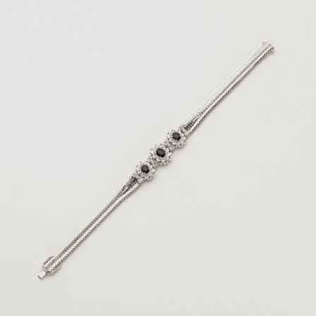 Bracciale in oro bianco con al centro tre zaffiri ovali contornati da diamanti rotondi taglio huitt - huitt g.27,80 White gold bracelet with three oval sapphires and surrounding diamonds