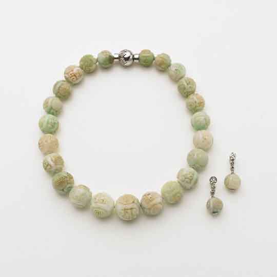 Demi-parure composta da collana e orecchini di giada incisa a scalare nella...