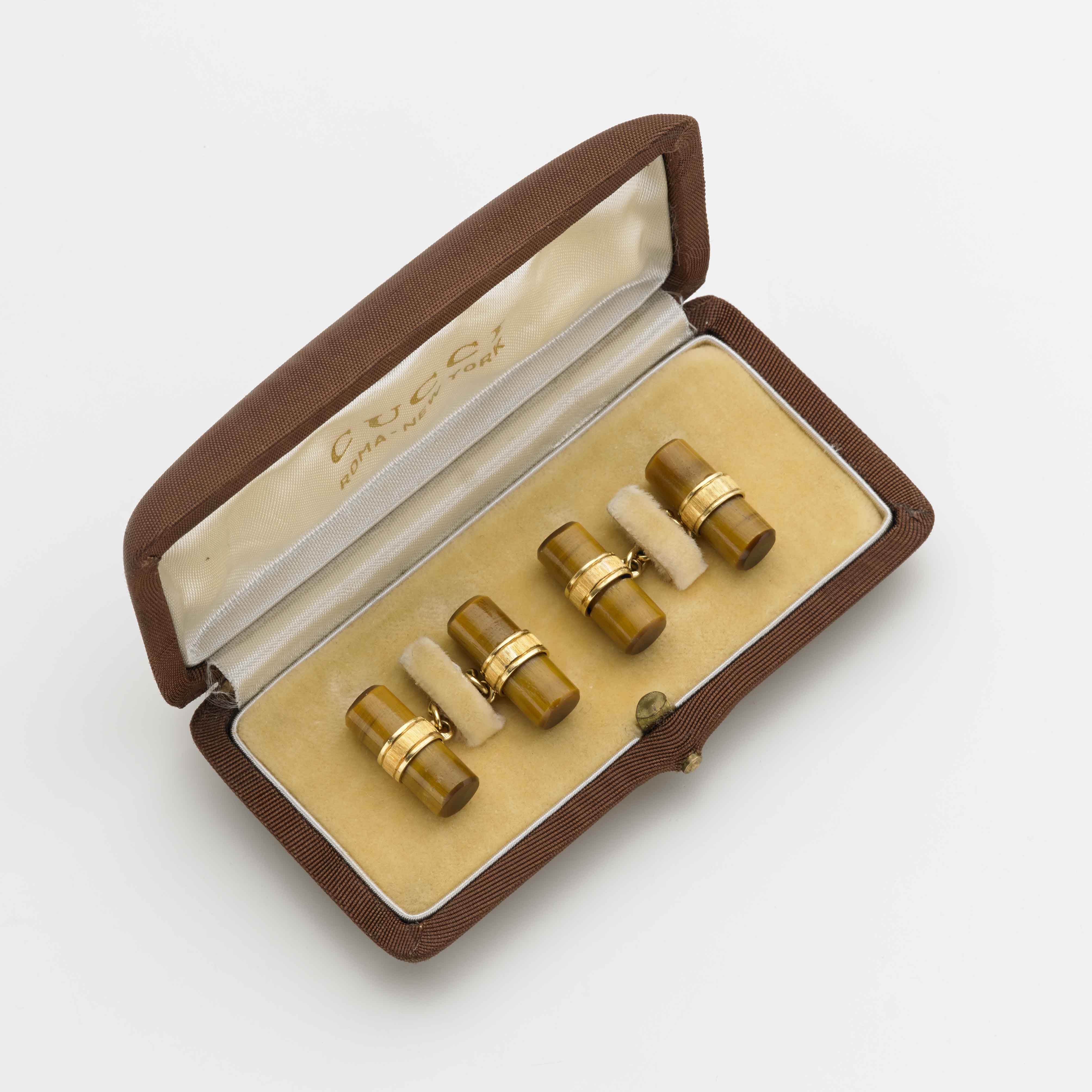 GUCCI Coppia di gemelli in occhio di tigre e oro giallo g. 10,70 in astuccio...