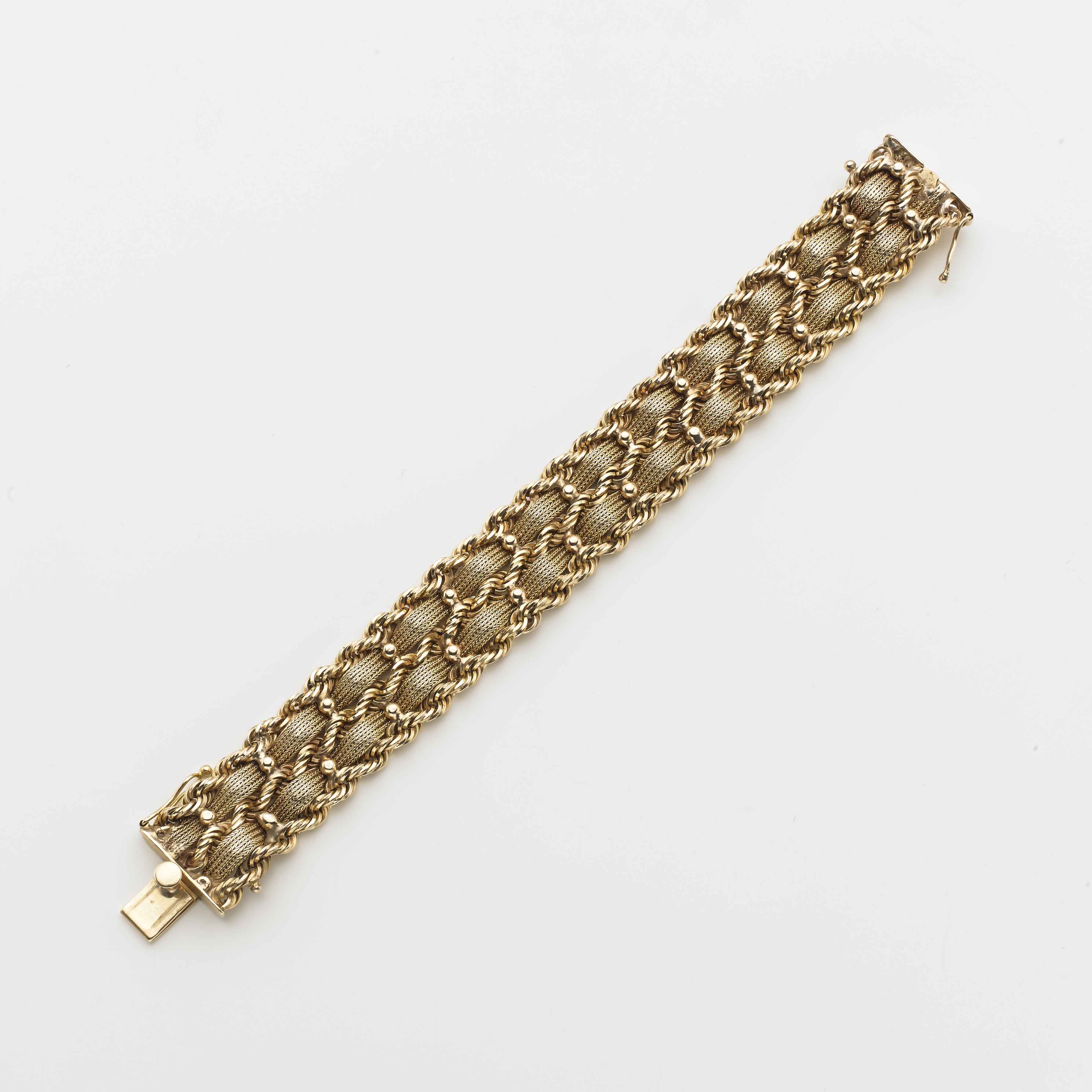 Bracciale in oro giallo a maglia intrecciata g. 63,90, lungh. cm 18,50,...